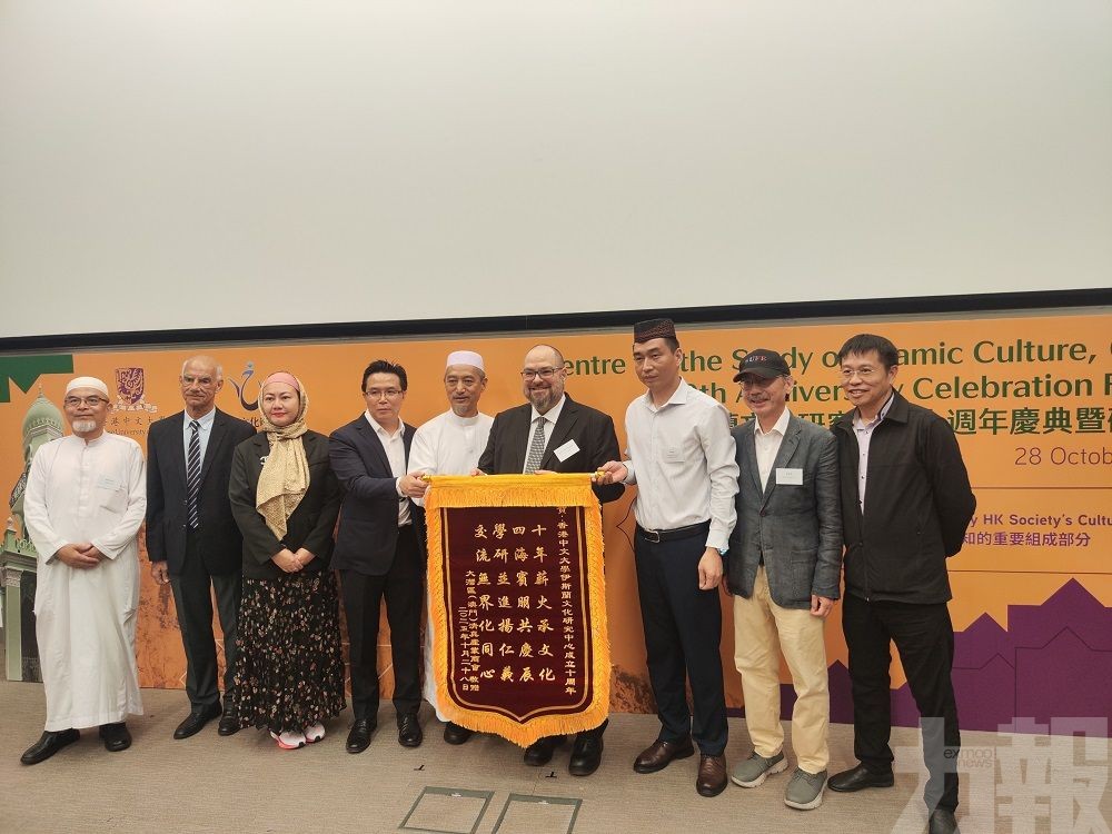为祝贺香港中文大学伊斯兰文化研究中心成立十週年,大湾区(澳门)清真产业商会特致赠祝贺锦旗,表达诚挚敬意与支持,期盼中心持续引领学术研究与教育,促进产学合作,为大湾区构建更具文化与经济活力的环境。