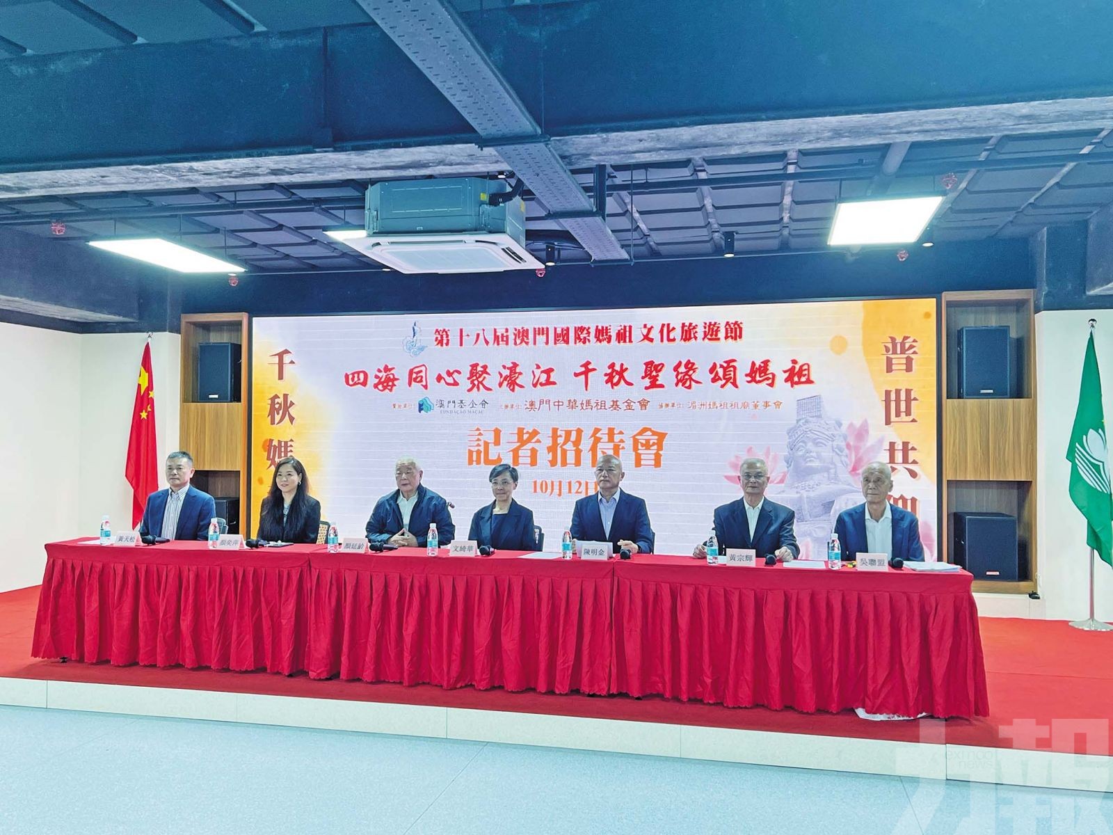 由澳门中华妈祖基金会主办、湄洲妈祖祖庙董事会协办,并获澳门基金会资助的「第十八届澳门国际妈祖文化旅游节」,将于10月26 日至29日举行。本次活动为疫情停办五年后首次复办,并正式升格为国际性盛事,将邀请近千名海内外嘉宾参与,特邀福建省歌舞剧院、泉州市文旅局呈献专场演出,内容涵盖开幕式暨妈祖祭典、大型主题晚会、妈祖金身绕境祈福等亮点环节。