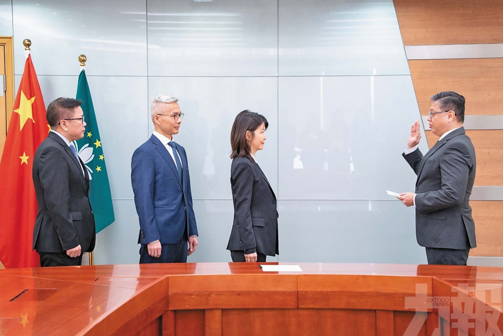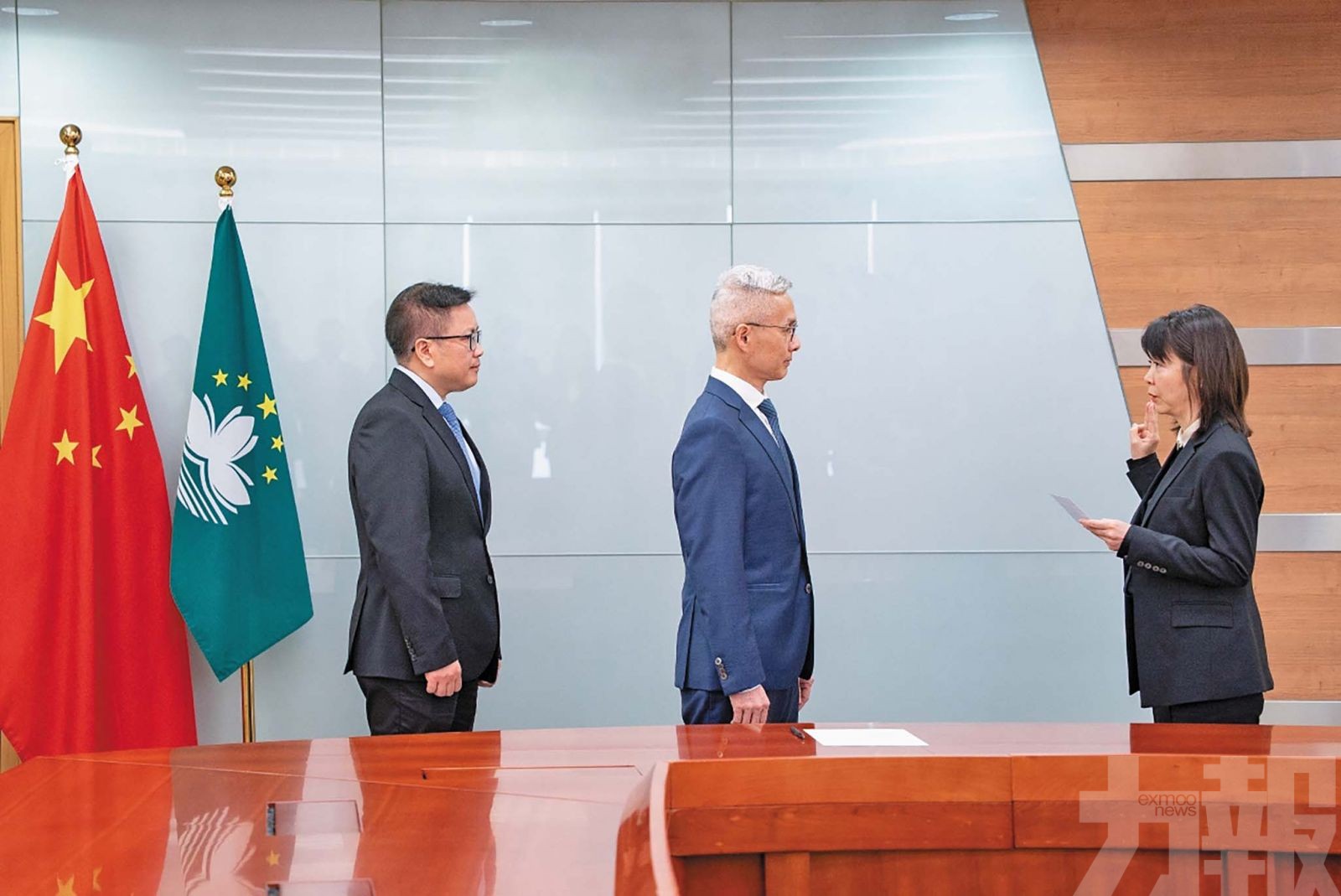 财政局局长何燕梅及副局长郭日海昨(5)日就职,仪式由经济财政司司长戴建业主持,及经济财政司司长办公室主任罗志辉见证。